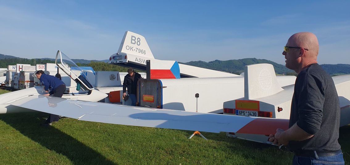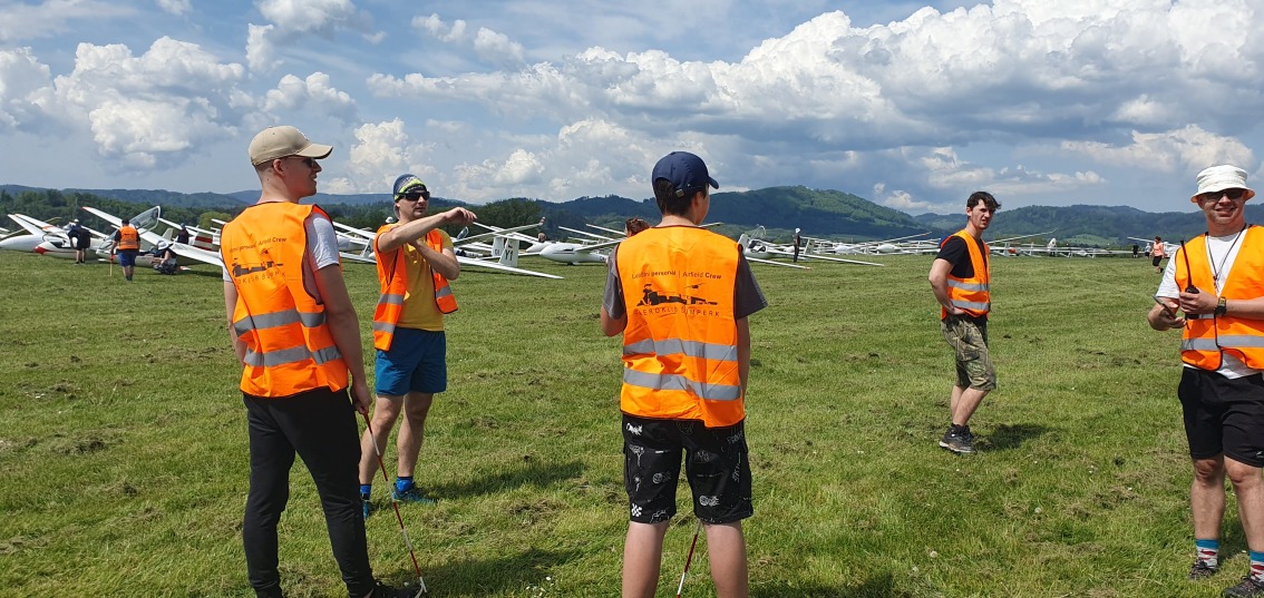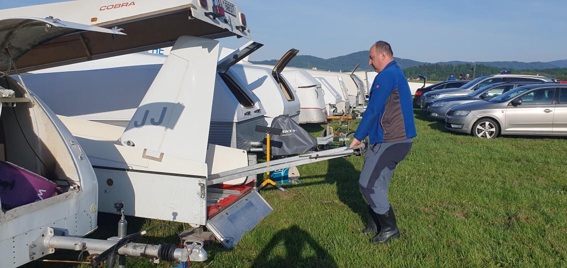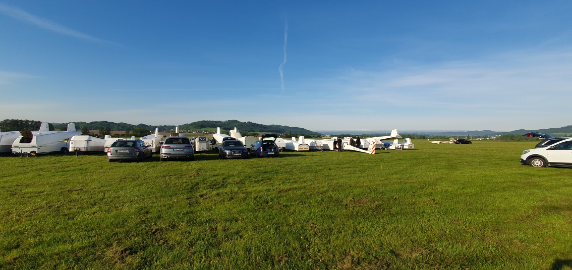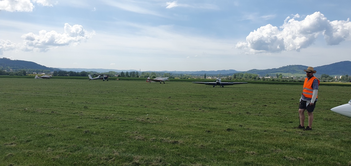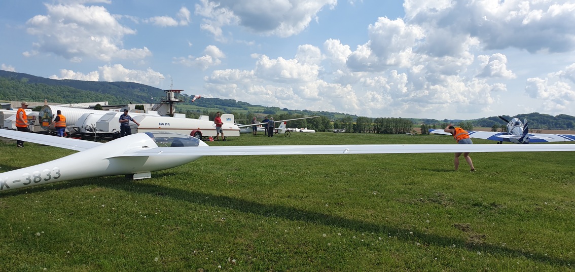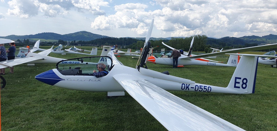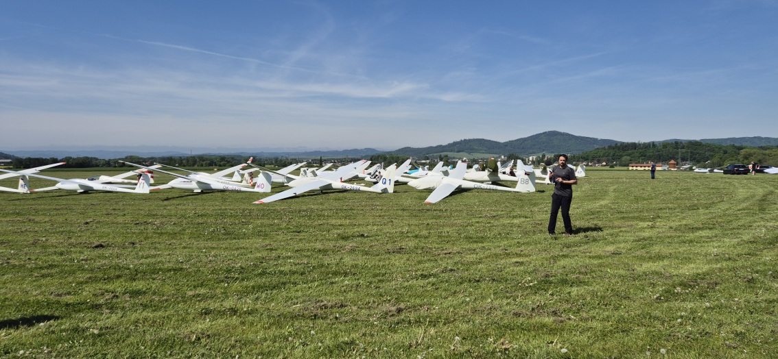 probudili jsme se do slunného dne, vypadá to že počasí nám první letový den přeje.  Stavíme grid na dráze 18, pomocníci rovnají klubovou třídu dle vylosovaného pořadí. Za ní si piloti kombi třídy chystají své stroje k dnešní letové úloze.