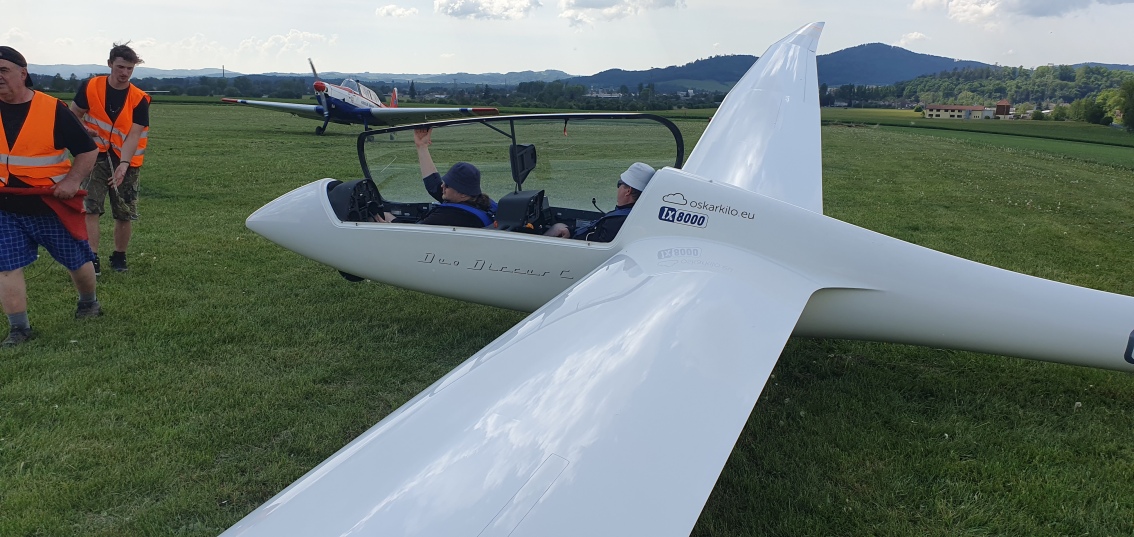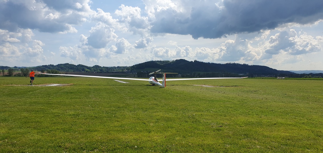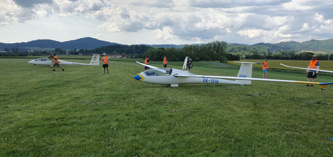 máme na zemi. Letový den byl úspěšný, obě třídy mají první platnou disciplínu.
