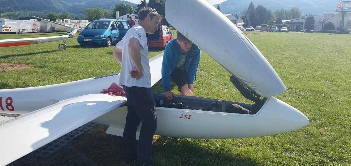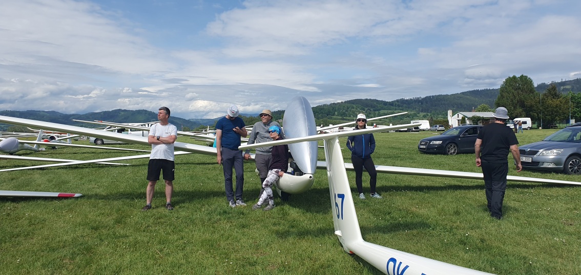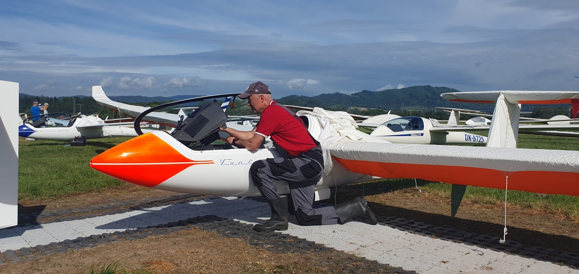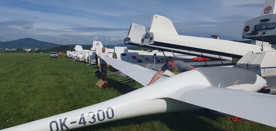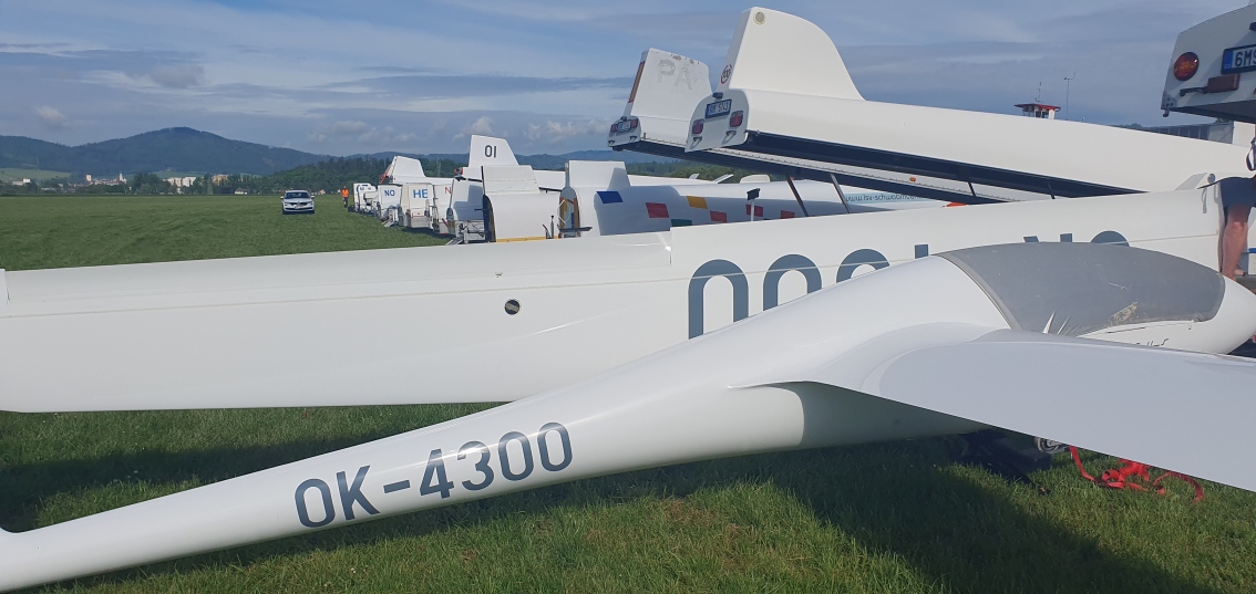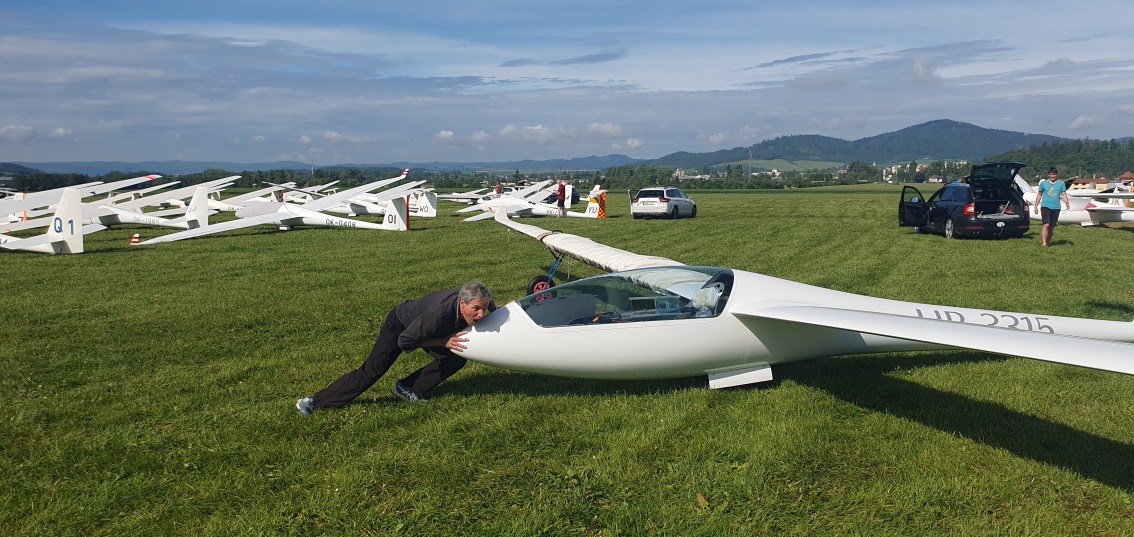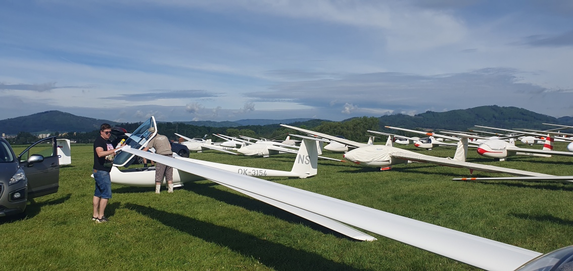 včerejší úlohu má platnou jen kombi třída. Většině pilotů klubové třídy se nepodařilo obletět trať. Dnes také nebude to nejlepší plachtařské počasí, ale zase to zkusíme.