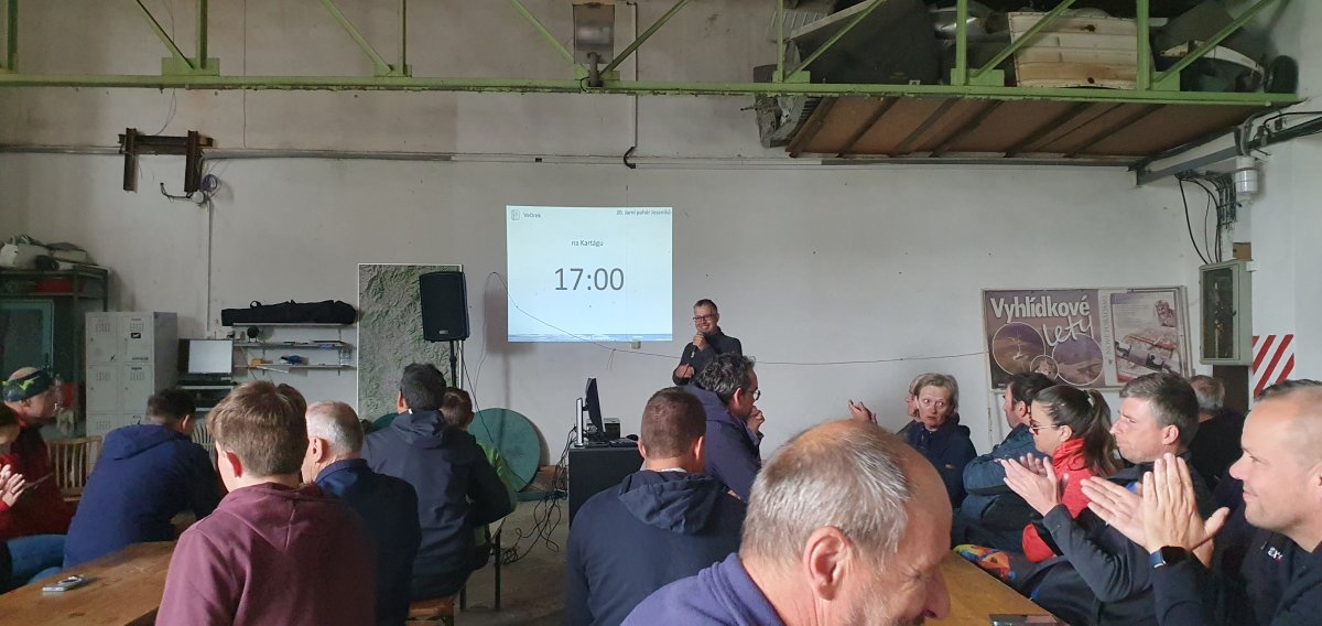briefing, vyhodnocení vítězů poslední disciplíny. V kombi třídě vyhrál, tak jako ve dvou předchozích, Honza Koťan CAT.